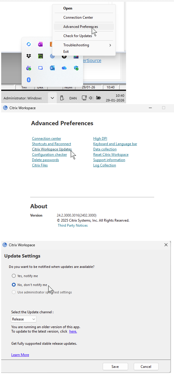 * HUSK at slå automatiske opdateringer fra i Citrix klienten: